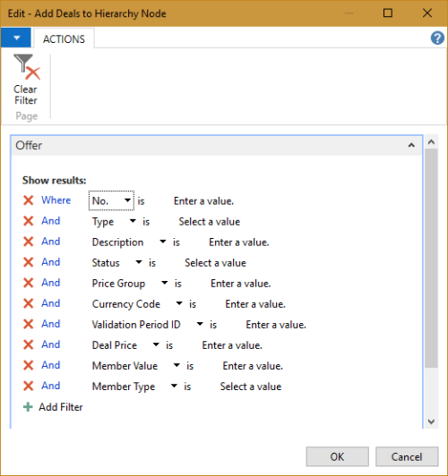 - When you have filled out your selection, click OK at the bottom of the page and the deals will be added to the current node.