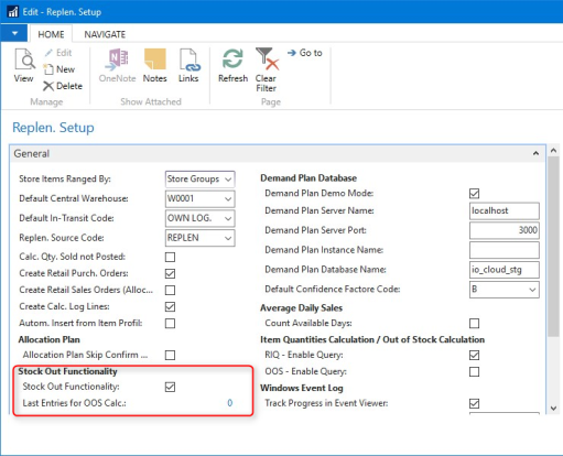 • Select the Stock Out Functionality field on the Replen. Setup page (Departments - LS Retail - Replenishment - Administration).