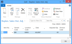 Sales History Adjustment can be also used in implementation projects to create a sales history without creating Item Ledger Entries. The sales history from Sales History Adjustment will be used for the forecast calculation.