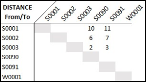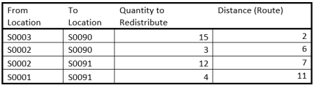 Note: A supply location will not be considered in the calculation if the value of Distance (Route) in the Redist. Matrix is 0. For more information on Distance (Route) calculation see How to: Calculate Distance (Route) .
