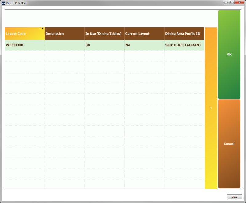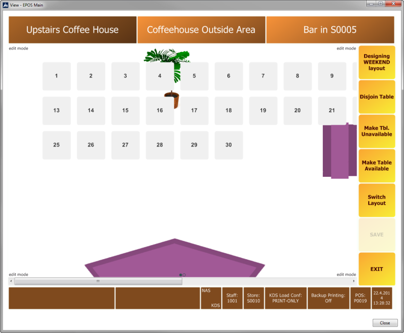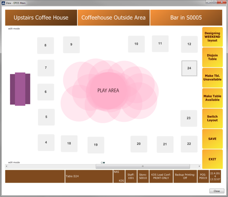 In this example you want to create a new layout for the Upstairs Coffee House. You do this by copying the DAY layout to a new WEEKEND layout.