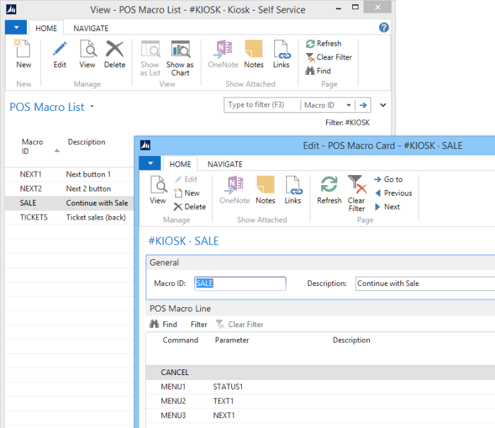 For each Menu Profile it is possible to set up Macros. Each Macro includes one or many menu lines.