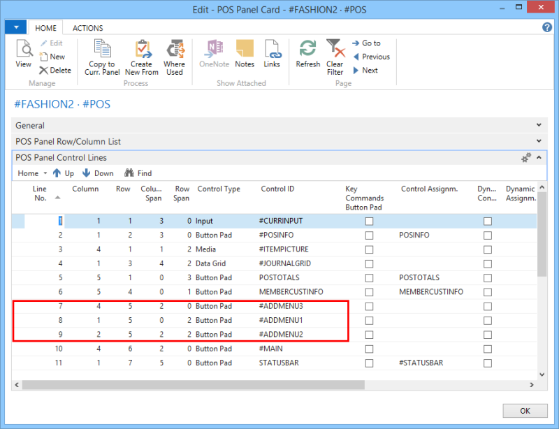 Each menu includes one or many menu lines where each menu line represents one button for the POS.