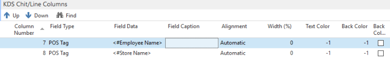Tags that are connected to the KDS System are used in the KDS Display Profile List Page with the KDS Chit/Line Display Designer. By selecting Field Type as POS Tag in the KDS Chit/Line Column section all tags of the type Transaction can be selected and added to the Chit Header, Footer or Column in the Line Display.