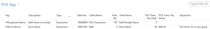 Note: The fields Table No. and Field No. identify where the POS Tag is to be retrieved from. Usually it is 99008980 POS Transaction but if another table is to be used there has to be a field (POS Trans Key Field) in POS Transaction that is an index into the table.