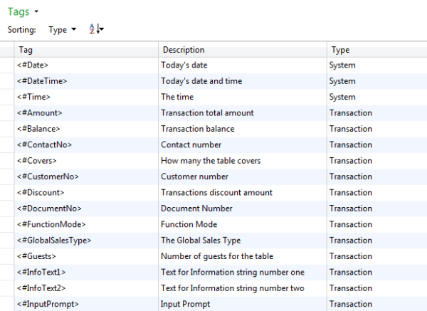 Tags are fixed information that is entered into the Menu’s Menu line.
