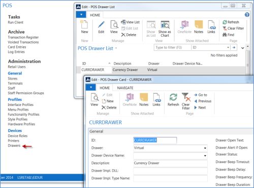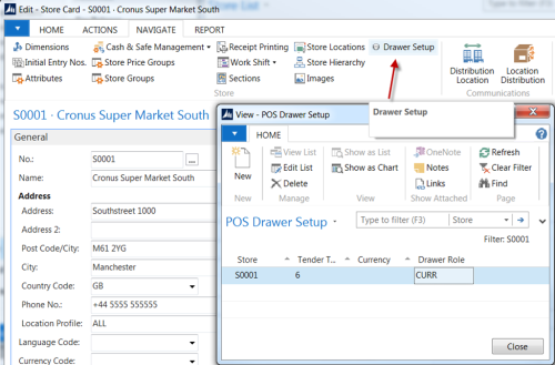 This action will open up the Drawer Setup List Page filtered to the given store.