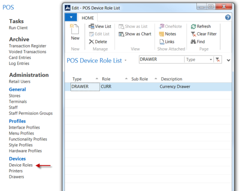 To link Drawers to Tender Types we need to create a Drawer Role. This is done in the Device Roles page.