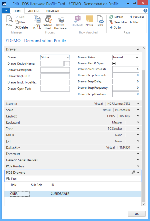 On the Hardware Profile Card in the tab POS Drawers you can configure additional drawers for that specific Profile. Note that the Drawer tab in the Hardware Profile still contains the Default Drawer.
