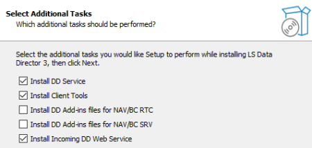 If you clear all check boxes, only DD Client files are installed without the Client Tools. These are the files needed for LS Nav, LS Central, or LS One to communicate with the Data Director: