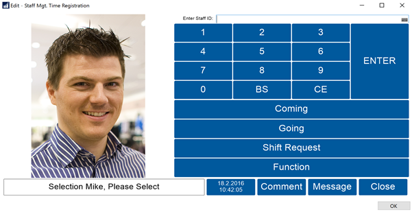 The employee would be swiping their employee card or entering their Time Entry ID, and then selecting either the Coming or Going buttons.