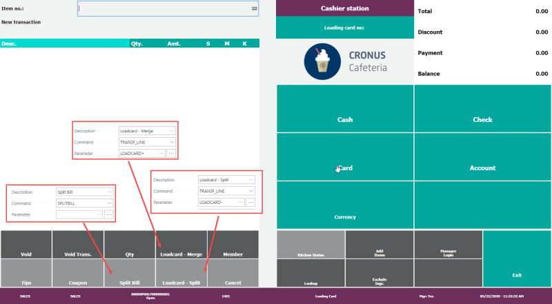 The Loading Card POS commands are inserted when you register the Modules, Additional POS Commands, and Hospitality.