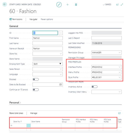Note: Connecting profiles in the Store Link Lines makes it possible for a Staff ID to log on the POS with different profiles per store.