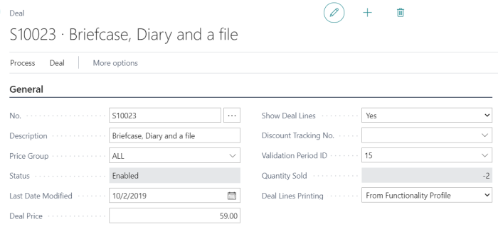 A Deal is a special promotion with items and a selection of items from a POS PLU menu. The Deal has a special Deal price. The Deal must be selected annually from a POS button. If items in a Deal are selected manually – that is not by the Deal – on the POS, this will not trigger the Deal.