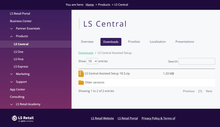 To download the setup file, click the link below and login to the LS Retail Portal to download the files to your computer.