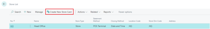 Select the Create New Store Card action.