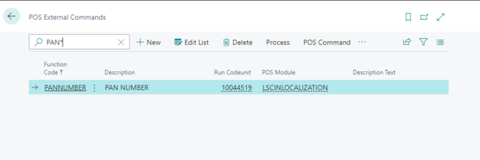 Type in the PANNUMBER command. This command is used to register and execute the IN-Localization command for PAN number validation.