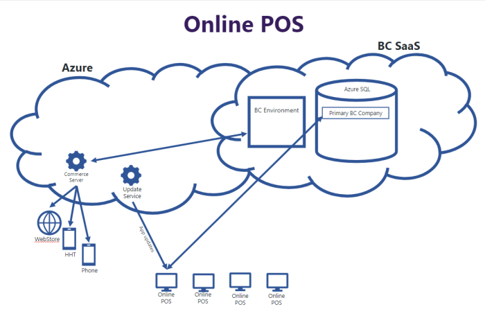 In SaaS you can either deploy the POS online or offline, and you can also combine the two deployment options. The online option is what we generally recommend. When running the POS online, you run the web client to connect to LS Central in SaaS. We recommend that you set up the Hardware Station and LS Central AppShell using Update Services, as that will make it easier to keep these components up-to-date and in sync with the updates in SaaS.