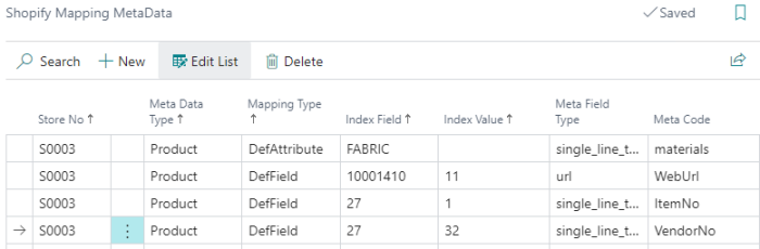 Maps field in LS Central tables to Shopify Meta Data entry. Fields from Item and Customer tables can be used and all fields in related tables to those (with relationship mapping to Item or Customer). LS CentralAttribute names can be mapped to different Meta Data entries names, if no mapping is done the default Attribute name will be used. If Include Attributes in MetaData is NOT selected, only those attributes that have been mapped, with default name or renamed will be sent to Shopify as Meta Data entry.