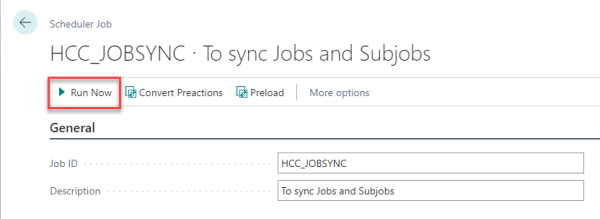 - Scheduler Job: HCC_JOBSYNC. This job is responsible for pulling other scheduler jobs from HO in SaaS to the POS Master that need to be run to pull the master/setup data. This should run automatically on the Task Scheduler after the installation, but if not, then run it manually from the Scheduler Job card: