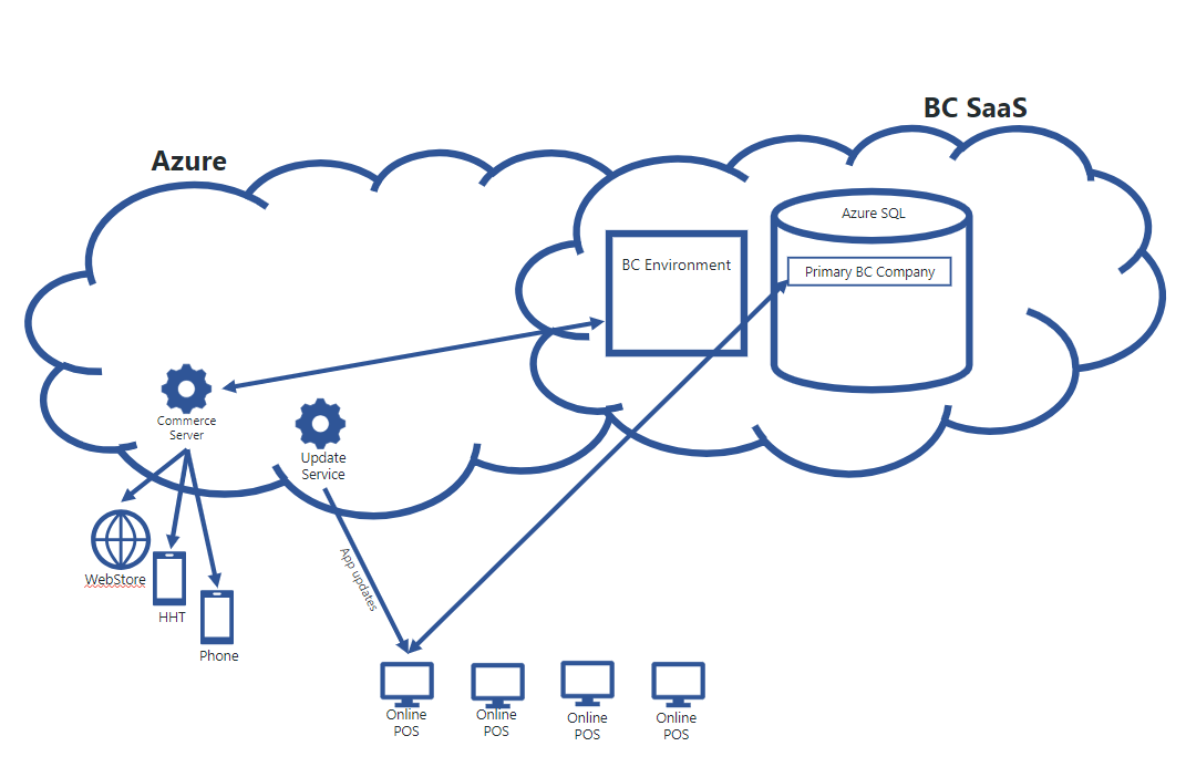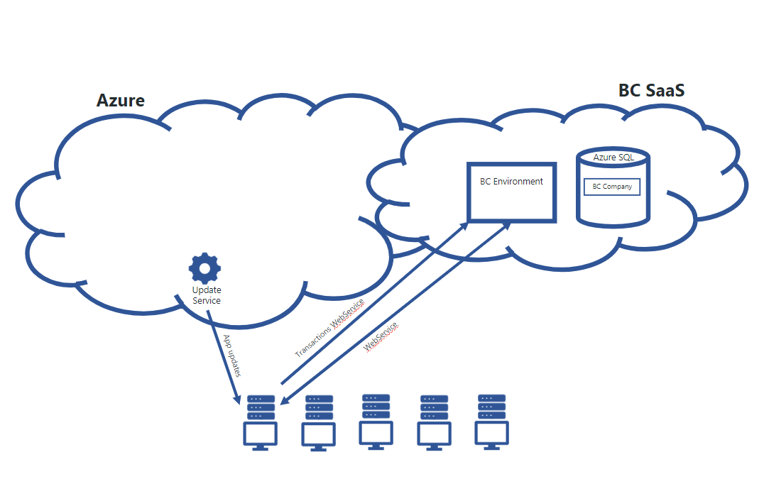 In SaaS you can either deploy the POS online or offline, and you can also combine the two deployment options. The online option is what we generally recommend. When running the POS online, you run the web client to connect to LS Central in SaaS. We recommend that you set up the Hardware Station and LS Central AppShell using Update Services, as that will make it easier to keep these components up-to-date and in sync with the updates in SaaS.