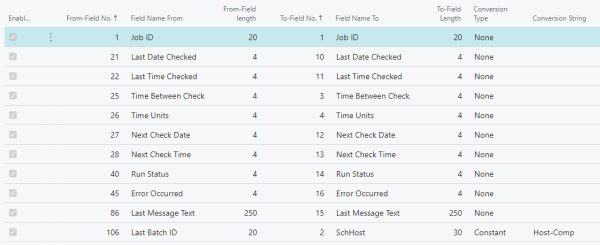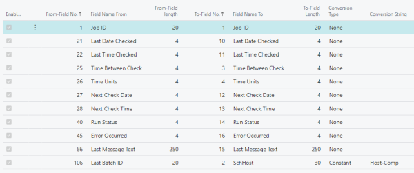 Create Normal Job for Scheduler Log lines that maps Scheduler Log to DDSchLog table. Select Include List in the Field Transfer Type field, and choose field 1 Entry No as Replication Counter.