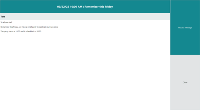 - Press the Retail Messages button in the POS. For details on how to set up the button, see Retail Message Setup.
