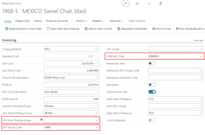 Note: You cannot have both VAT and GST calculations at the same item. Either the GST Group Code or VAT Prod. Posting Group must be left blank.