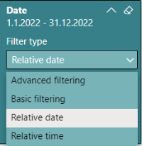 - Relative time – dynamic time period, for example to only show data for a particular hour.