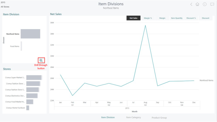 In the image below, ‘Nonfood Items’ has been selected, and the hover description says "See Item Category details for Nonfood Items". When you click the button, another page called Item Category with Nonfood Items as filter is displayed.