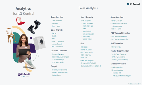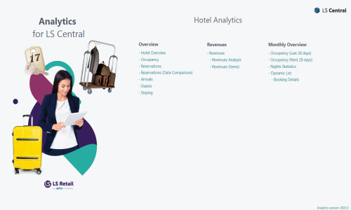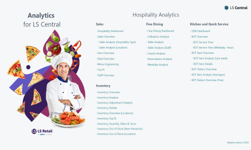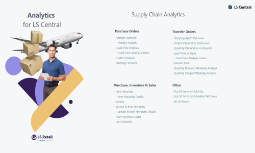 Analytics for LS Central offers Sales, Inventory, Supply chain, and Actionable Insights Power BI report templates out of the box for all LS Central instances and an additional Hotels report template for those that have the LS Central for Hotels extension.