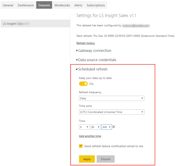Set the schedule refresh in Power BI