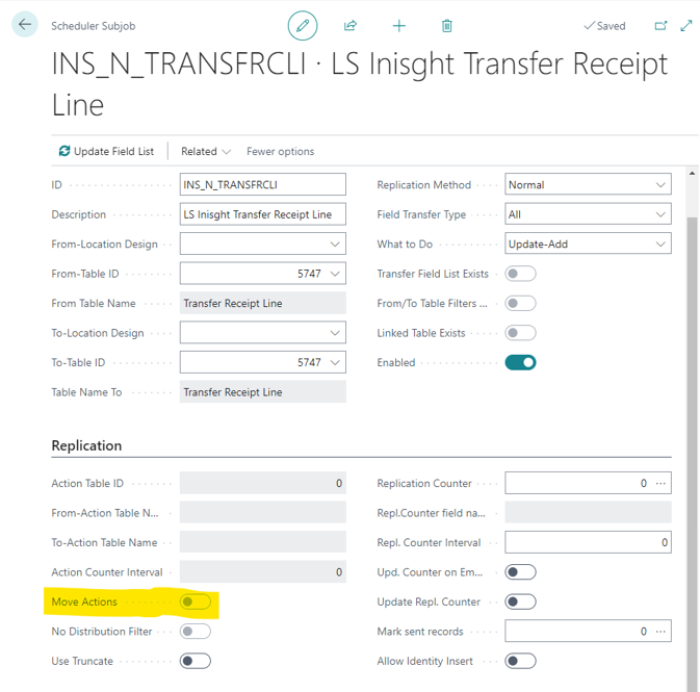 - Open all the subjobs, and check if the Move Actions flag is enabled. Do the same for all jobs with ID starting with INS_NWC (should show all subjobs for INS_NORMAL_COUNT).
