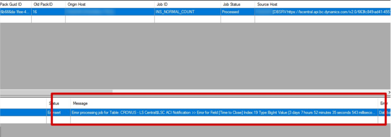 The SaaS replication process can be fragile and errors sometimes occur during replication. Even if a replication job is started from LS Central, it can fail during run in the Data Director. It is always a good idea when setting up the replication of the Analytics jobs to open the Configuration tool and the job monitor and monitor the first few runs of the jobs. Below are some errors that can occur when replicating and solutions to them.