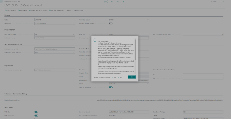 When this error occurs, something is wrong with the LS Central source information in the ADF. You must check the following parameters: