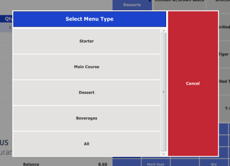 Press Main Course. (You can also press All. This prints everything that has not been sent to the kitchen, not just items with menu type Main Course.)