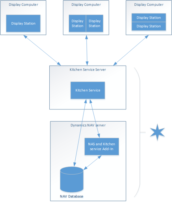 * A common change to this setup is to combine the NAS server and Kitchen Service server into a single machine.