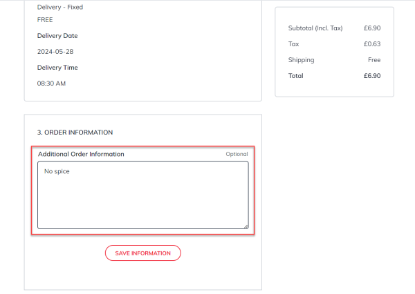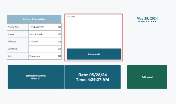 Hospitality customers can also provide additional information in the form of order comments on the checkout. This information will be synced back with LS Central in addition to the originally saved value in the customer session.