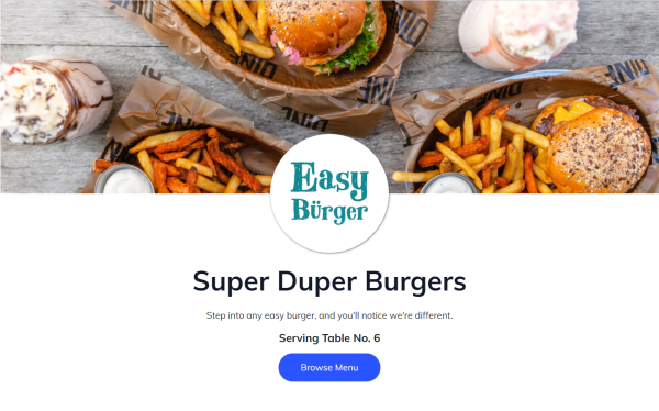 Since customers use the QR code to load the website, the current dining table number is displayed on the landing page with a link to the available menu, based on the current customer.