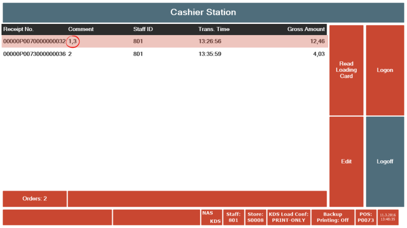 Scanning either card 1 or 3 opens up the order in the sales POS.