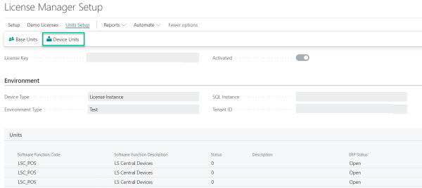 Note: The number of LS Device Units available to be activated depends on the total number of LS Device Units purchased minus the total number of LS Device Units already activated by other instances.
