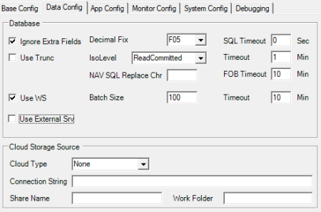| FOB Timeout | FOB Import/Export Processing Timeout (only for NAV 2013 or newer). |