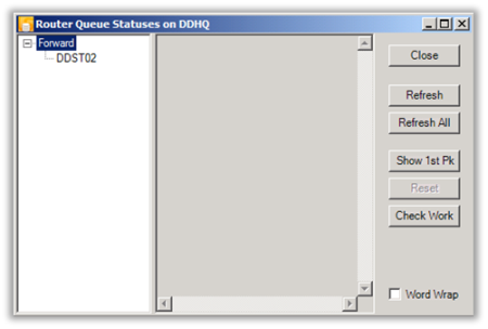 Here you can look at the Debug stream from each DD Process and look at the Job Queue in the Router. If you run into a problem, this is the place to check what is going on. Local DD versions and build numbers are also displayed here.