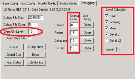To debug the Client Control that is used by LS Retail NAV or LS One Site Manager, type the debug level value into the Client Ctrl Level box.
