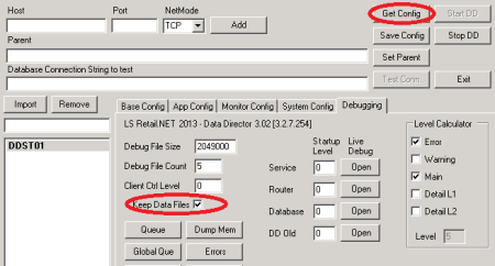 - Go to the Debugging tab, and select Keep Data Files to let DD store all the data files for the jobs after processing. Send the Config back to DD by clicking the Send Config button.