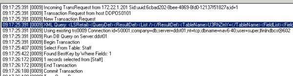 - When TS sends in a request to DD, you will see data like this in the debug window: