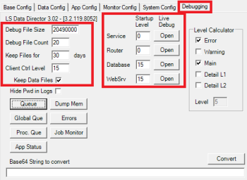 - Increase the Debug File Size and File Count. The values here depend on how busy the system is, and the time between missing data get noticed. A good starting point is to add one or two zeros at the end for file size and set the count to 20 or more.