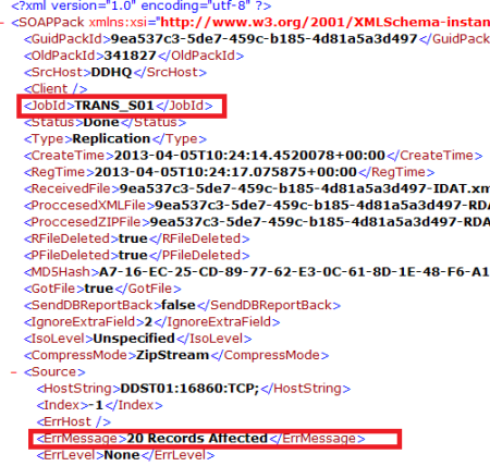 Now the tricky part is to find the Job Data file: you can use the time stamp of the file to figure out which one it could be, but when you find file, open the xxxxx-HEAD.XML file for that job, make sure it has the correct JobId (job ID from the HO Scheduler), and status Done. Look at what the ErrMessage says, how many records were affected. This tells you how many records total DD picked up.