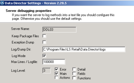 - Select Error, Main, Action, and Detail for Log Level.