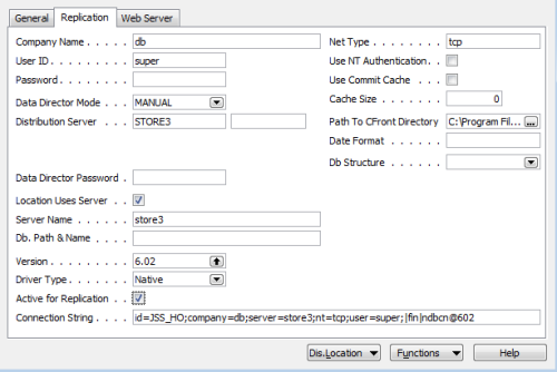 - In Distributions Location setup, for all destination hosts that will be getting the data manually, change the Data Director Mode to MANUAL, and type the host path in the Distribution Server Name field. The format for the host path is the host name with default port number and :MAN mode ending [STORE3:16860:MAN]